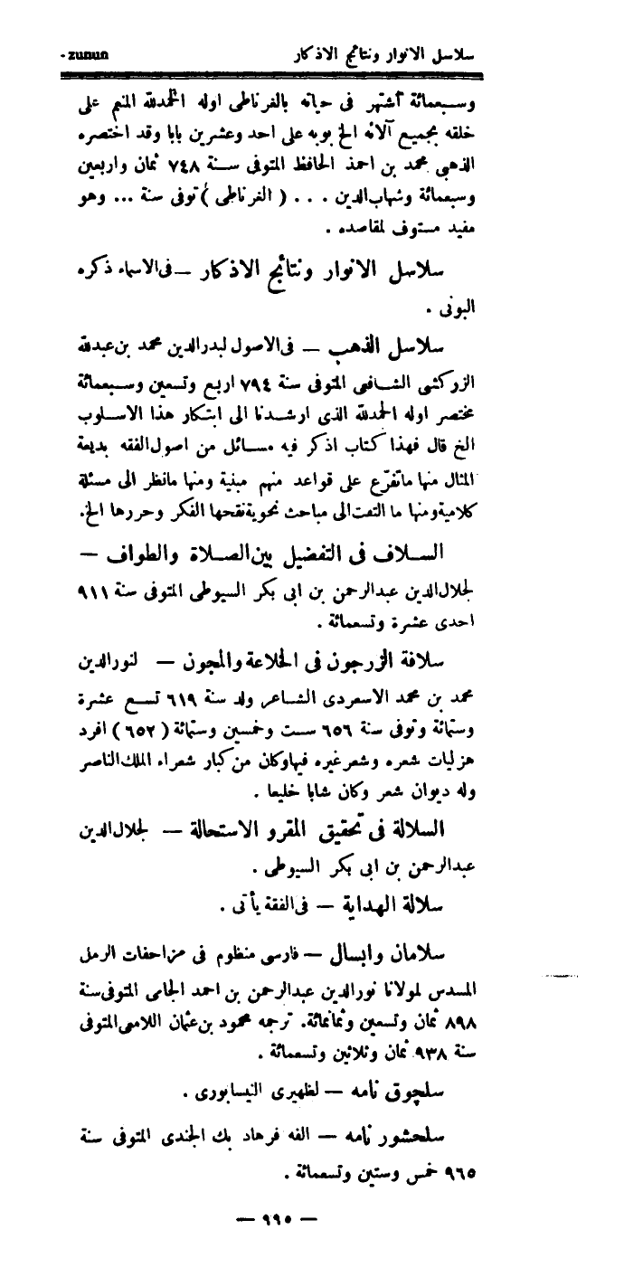 سلاسل الأنوار، ونتائج الأذكار