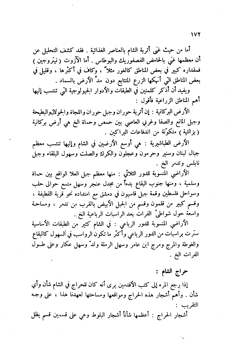 الأرض البركانية: إن أتربة حوران وجبل حوران واللجاة والجولان والبطيحة وجبل المانع والصفا وغربي العاصي بين حمص وحماة الخ هي أرض بركانية بزالتية متكوّنة من اندفاعات البراكين.