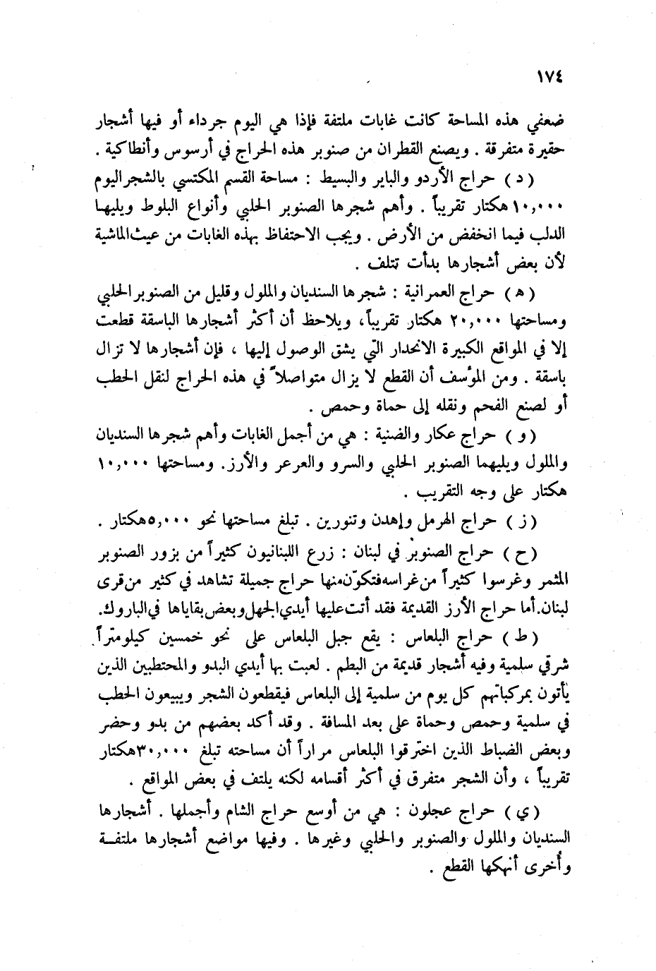 ضعفي هذه المساحة كانت غابات ملتفة فإذا هي اليوم جرداء أو فيها أشجار حقيرة متفرقة. ويصنع القطران من صنوبر هذه الحراج في أرسوس وأنطاكية.