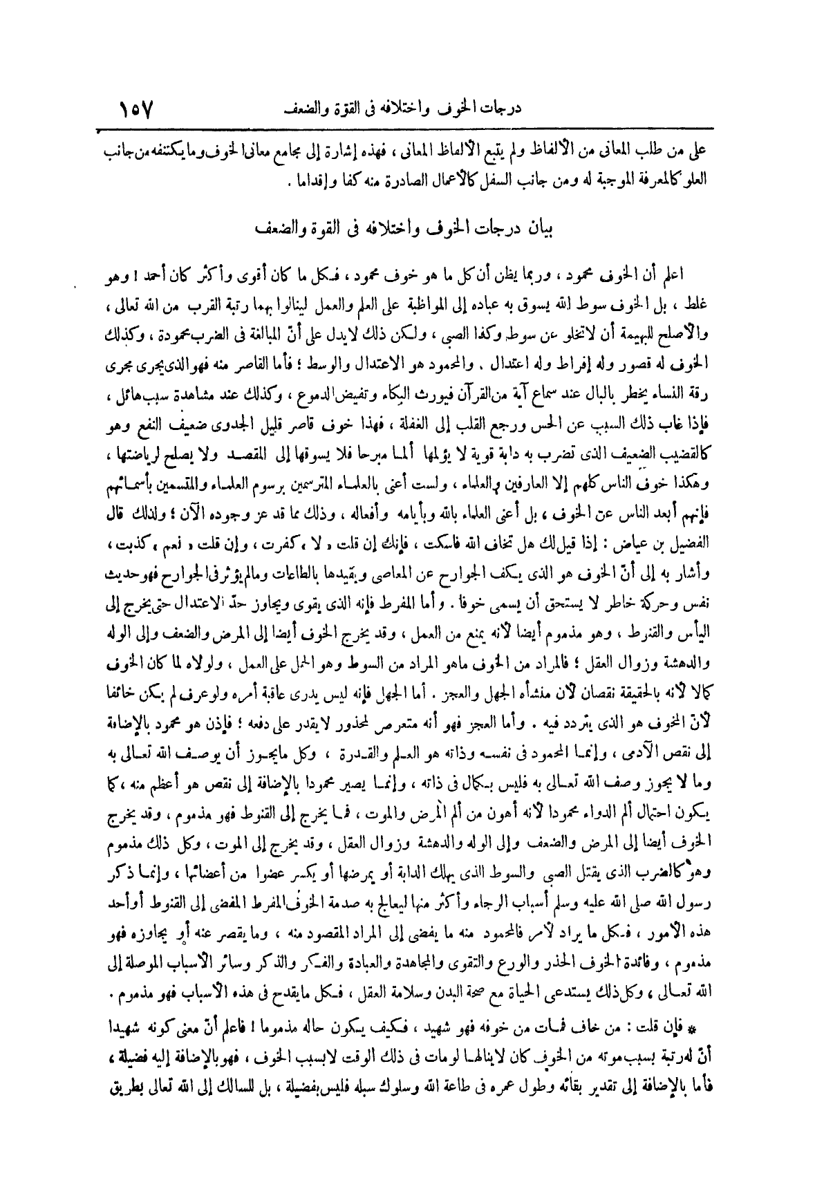 بيان درجات الخوف وإختلافه في القوة والضعف
