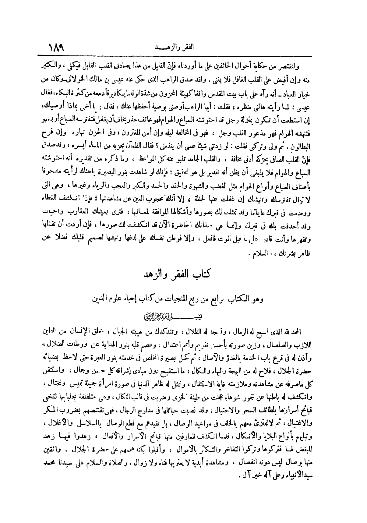 كتاب الفقر والزهد وهو الكتاب رابع من ربع المنجيات من كتاب إحياء