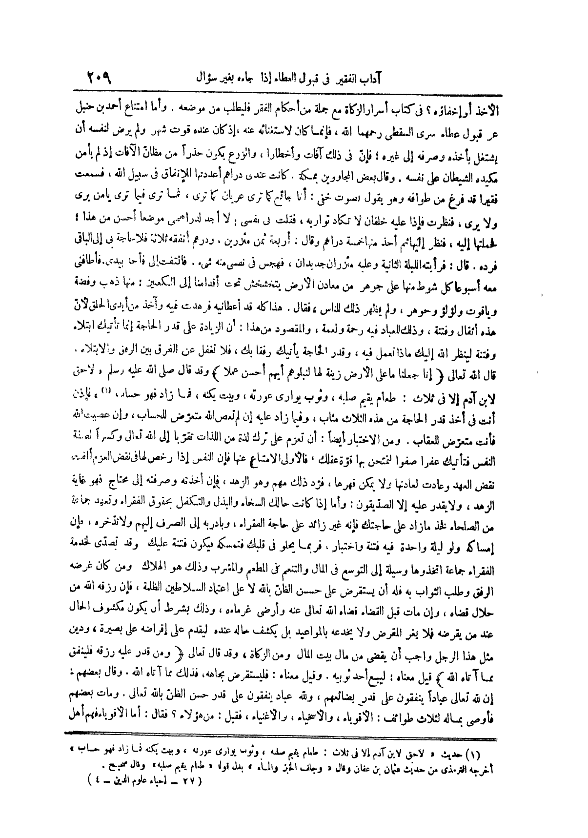 الأخذ أو إخفاؤه في كتاب أسرار الزكاة مع جملة من أحكام الفقر فليطلب من موضعه