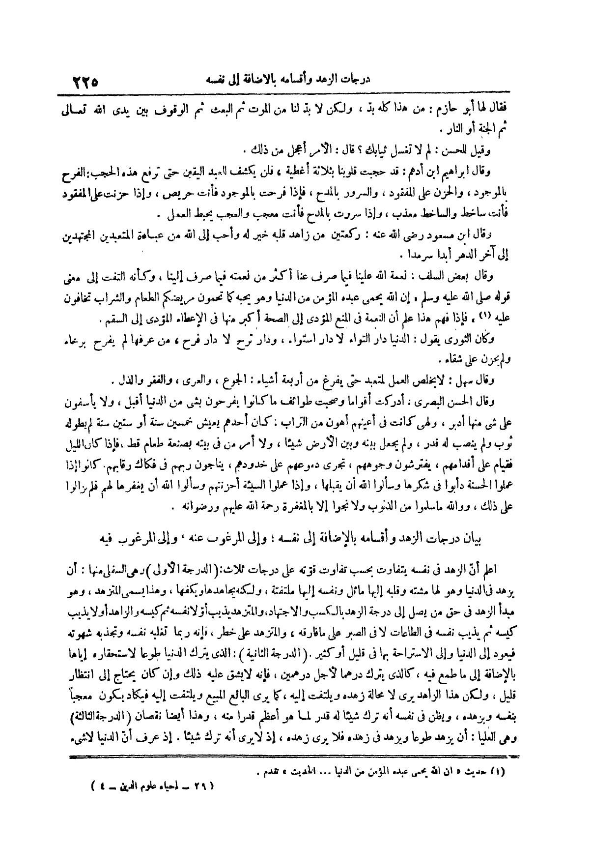 بيان درجات الزهد وأقسامه بالإضافة إلى نفسه وإلى المرغوب عنه وإلى