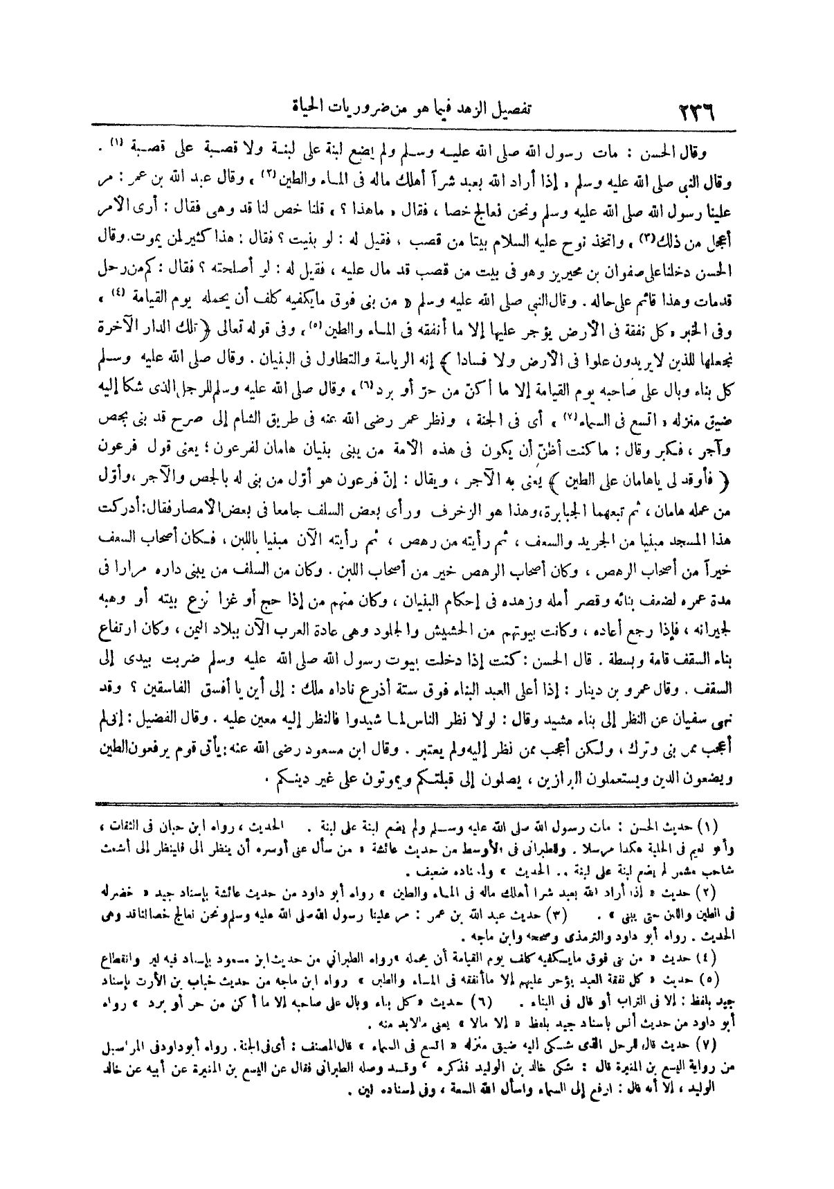 (¬4) من بنى فوق ما يكفيه كلف يوم القيامة أن يحمله رواه الطبراني من حديث ابن مسعود بإسناد فيه لين وانقطاع