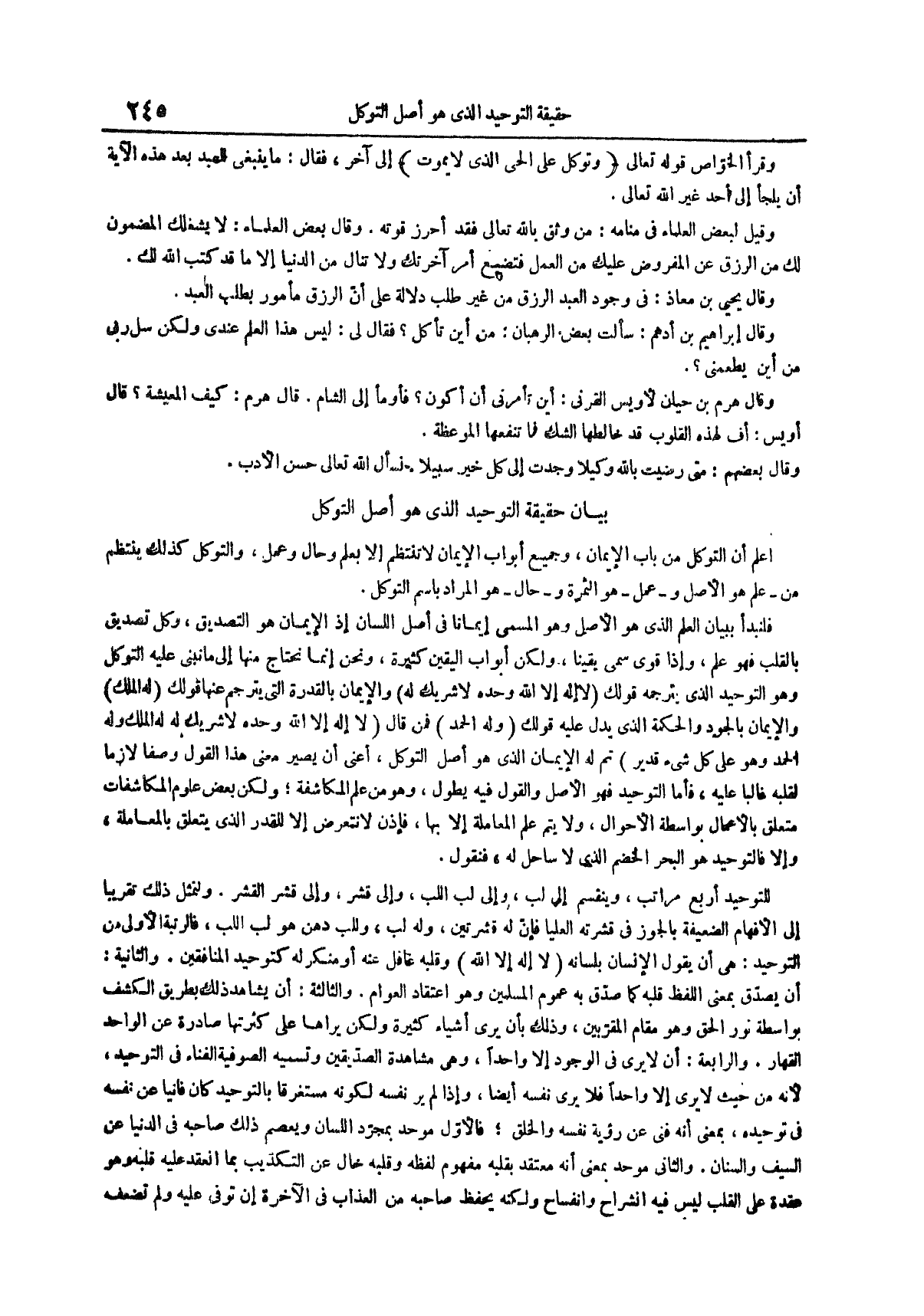 بيان حقيقة التوحيد الذي هو أصل التوكل