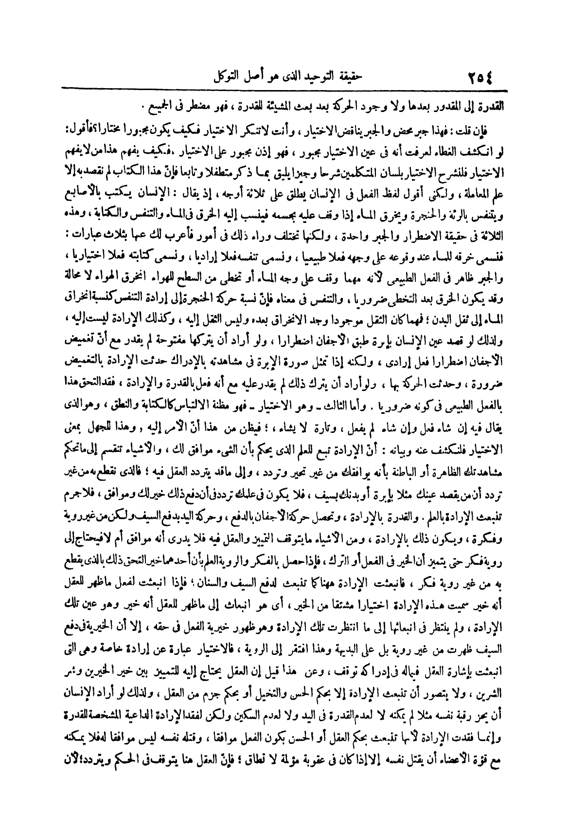 القدرة إلى المقدور بعدها ولا وجود الحركة بعد بعث المشيئة المقدرة فهو مضطر في الجميع