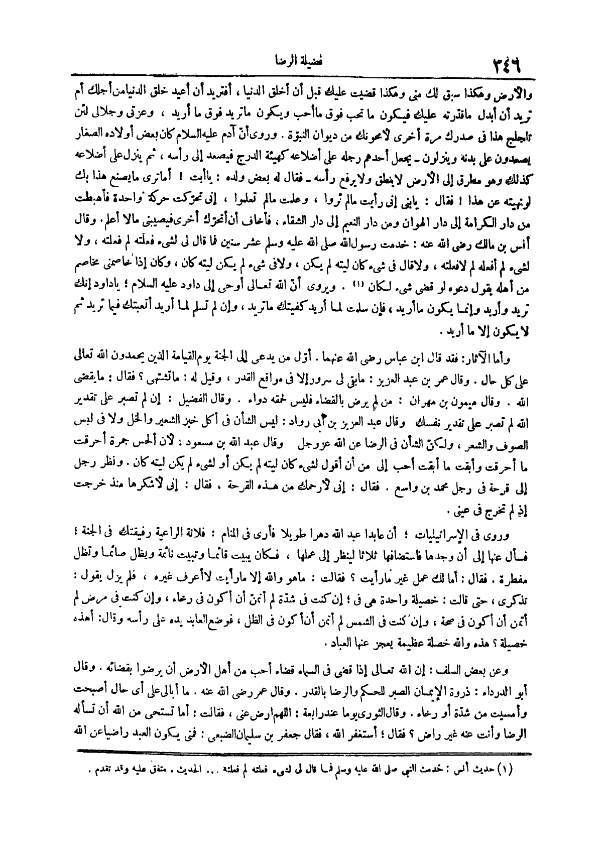وقال الفضيل إن لم تصبر على تقدير الله لم تصبر على تقدير نفسك وقال عبد العزيز بن أبي رواد ليس الشأن في أكل خبز الشعير والخل ولا في لبس الصوف والشعر ولكن الشأن في الرضا عن الله عز وجل وقال عبد الله بن مسعود لأن الحس جمرة أحرقت ما أحرقت وأبقت ما أبقت أحب إلي من أن أقول لشئ كان ليته لم يكن أو لشيء لم يكن ليته كان