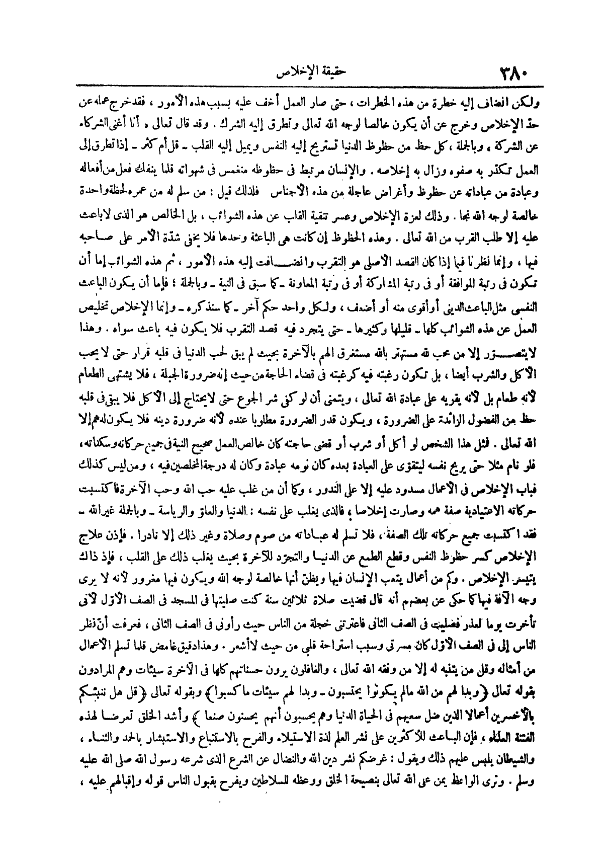 وقد قال تعالى أنا أغني الشركاء عن الشركة وَبِالْجُمْلَةِ كُلُّ حَظٍّ مِنْ حُظُوظِ الدُّنْيَا تَسْتَرِيحُ إِلَيْهِ النَّفْسُ وَيَمِيلُ إِلَيْهِ الْقَلْبُ قَلَّ أَمْ كَثُرَ إِذَا تَطَرَّقَ إِلَى الْعَمَلِ تَكَدَّرَ بِهِ صفوه وزال به إخلاصه