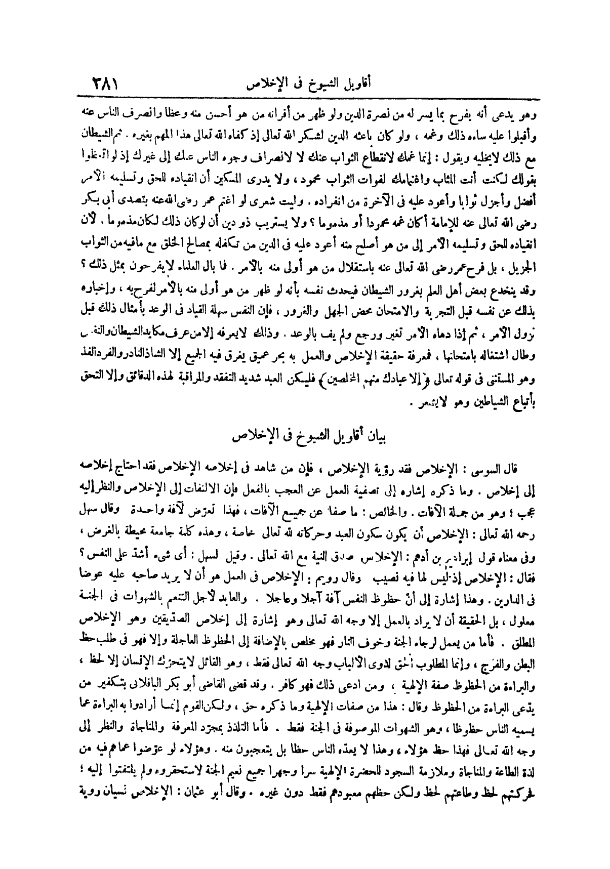 بيان أقاويل الشيوخ في الإخلاص