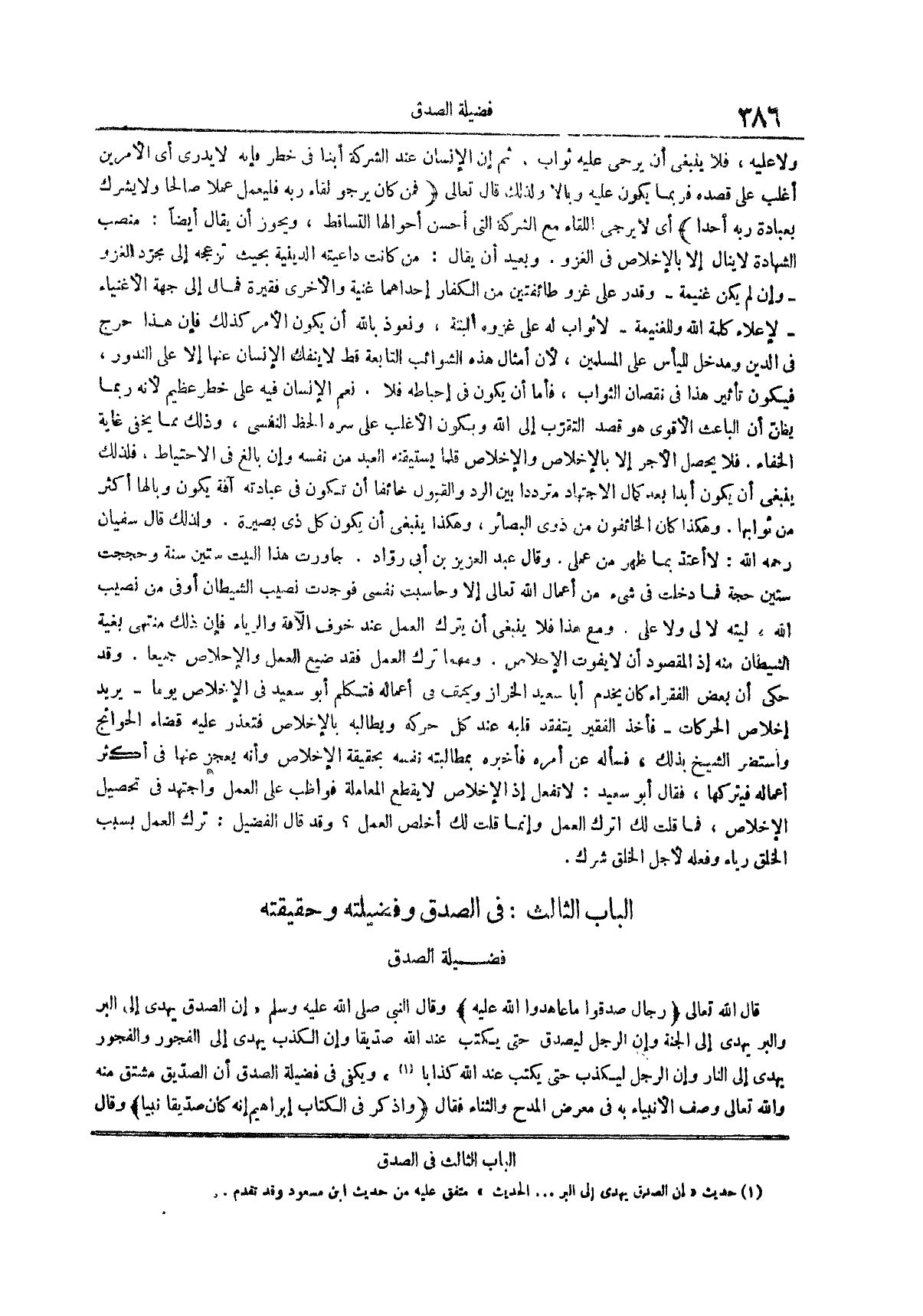 الباب الثالث في الصدق وفضيلته وحقيقته