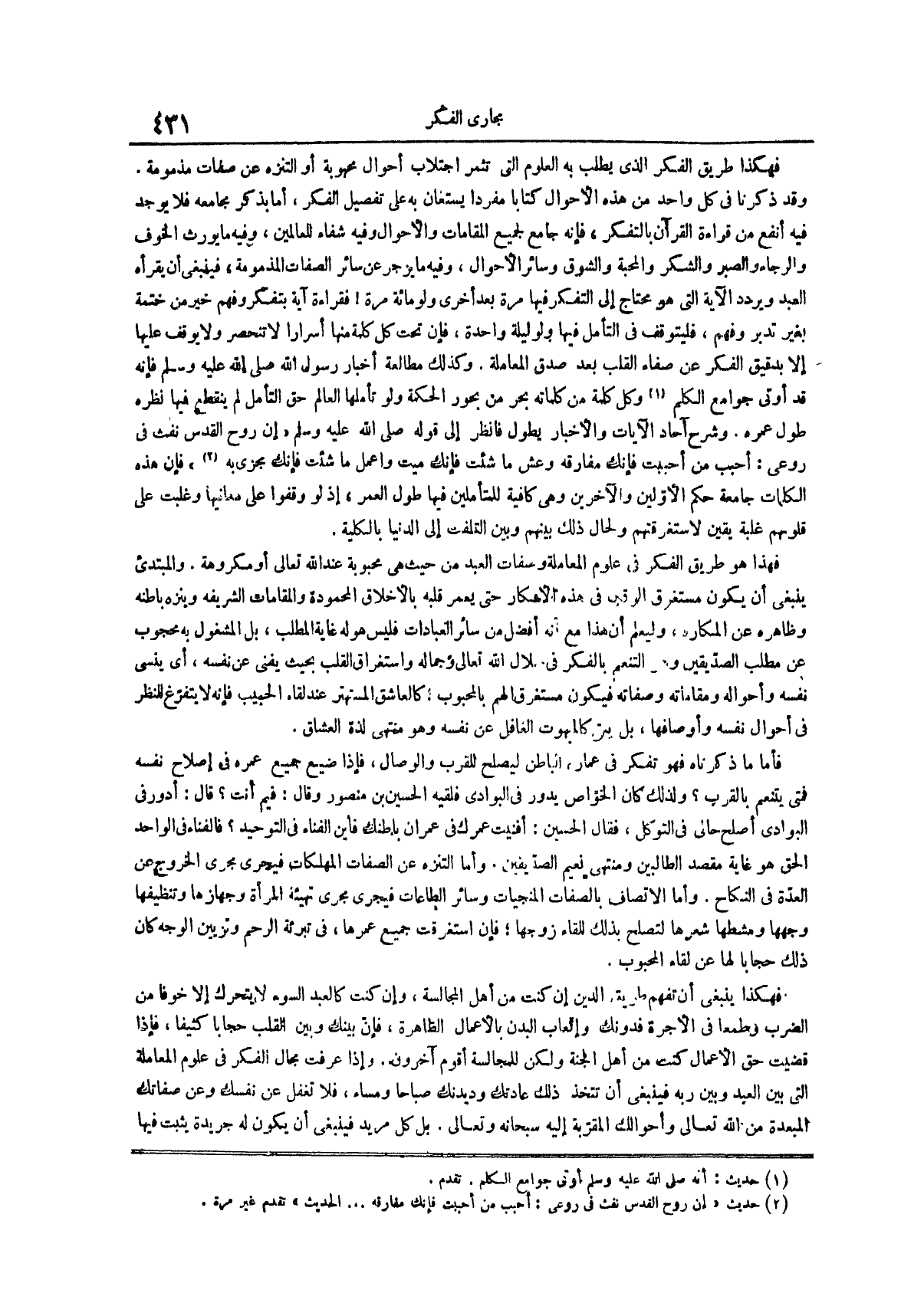 فهذا هو طريق الفكر في علوم المعاملة وصفات العبد من حيث هي محبوبة عند الله تعالى أو مكروهة