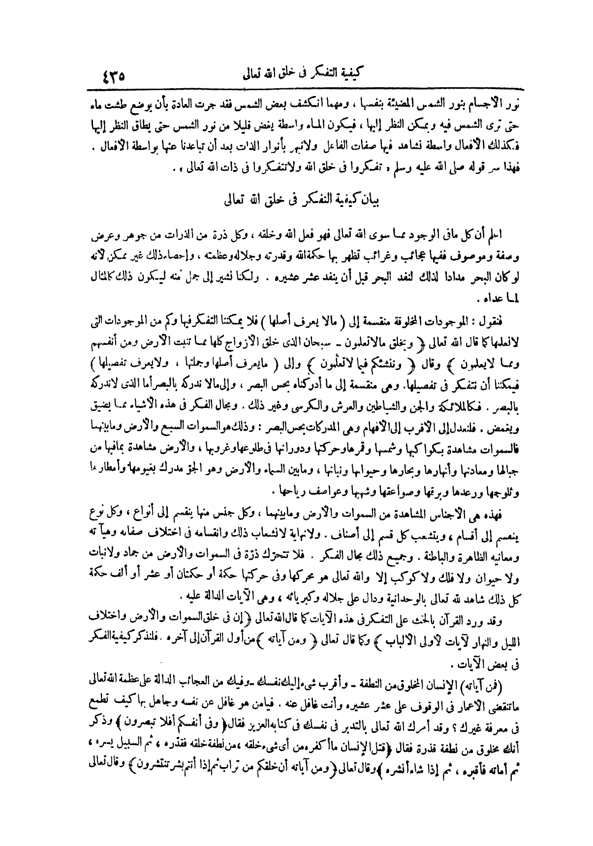 بَيَانُ كَيْفِيَّةِ التَّفَكُّرِ فِي خَلْقِ اللَّهِ تَعَالَى