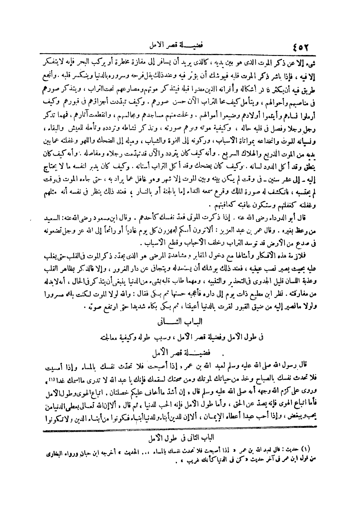 الباب الثاني في طول الأمل وفضيلة قصر الأمل وسبب طوله وكيفية
