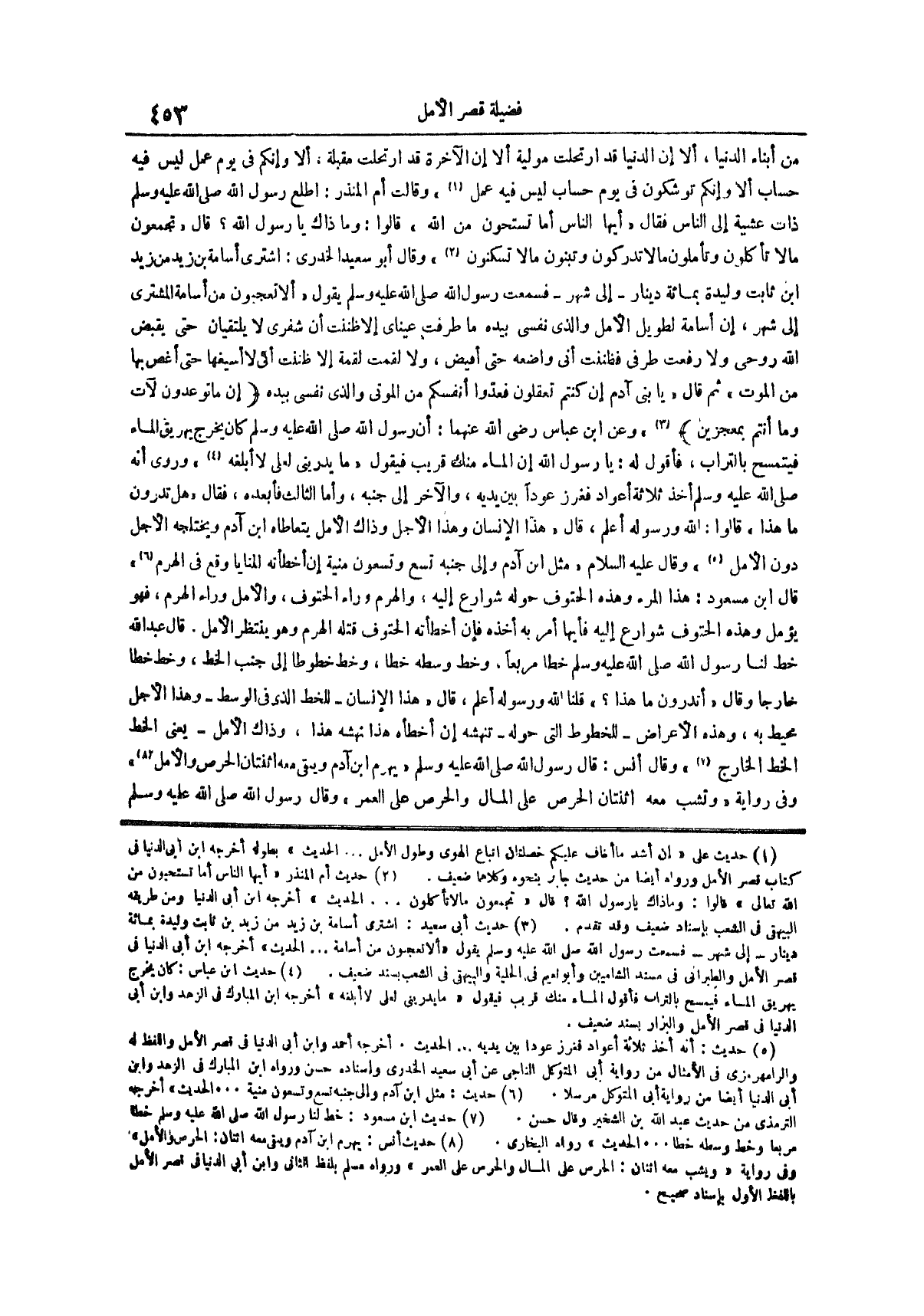 (¬5) حديث أنه أخذ ثلاثة أعواد فغرز عودا بين يديه الحديث أخرجه احمد وابن أبي الدنيا في قصر الأمل واللفظ له