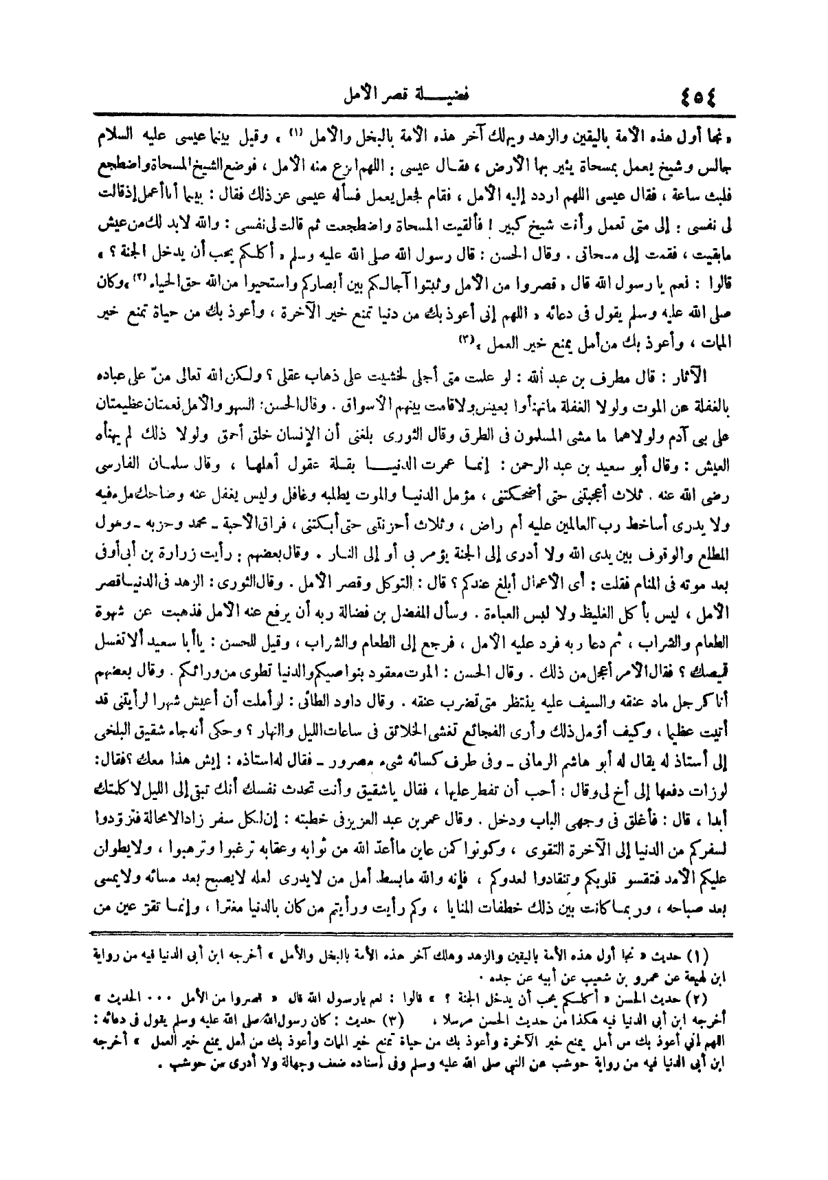(¬2) حديث الحسن أكلكم يحب أن يدخل الجنة قالوا نعم يا رسول الله قال قصروا من الأمل الحديث أخرجه ابن أبي الدنيا