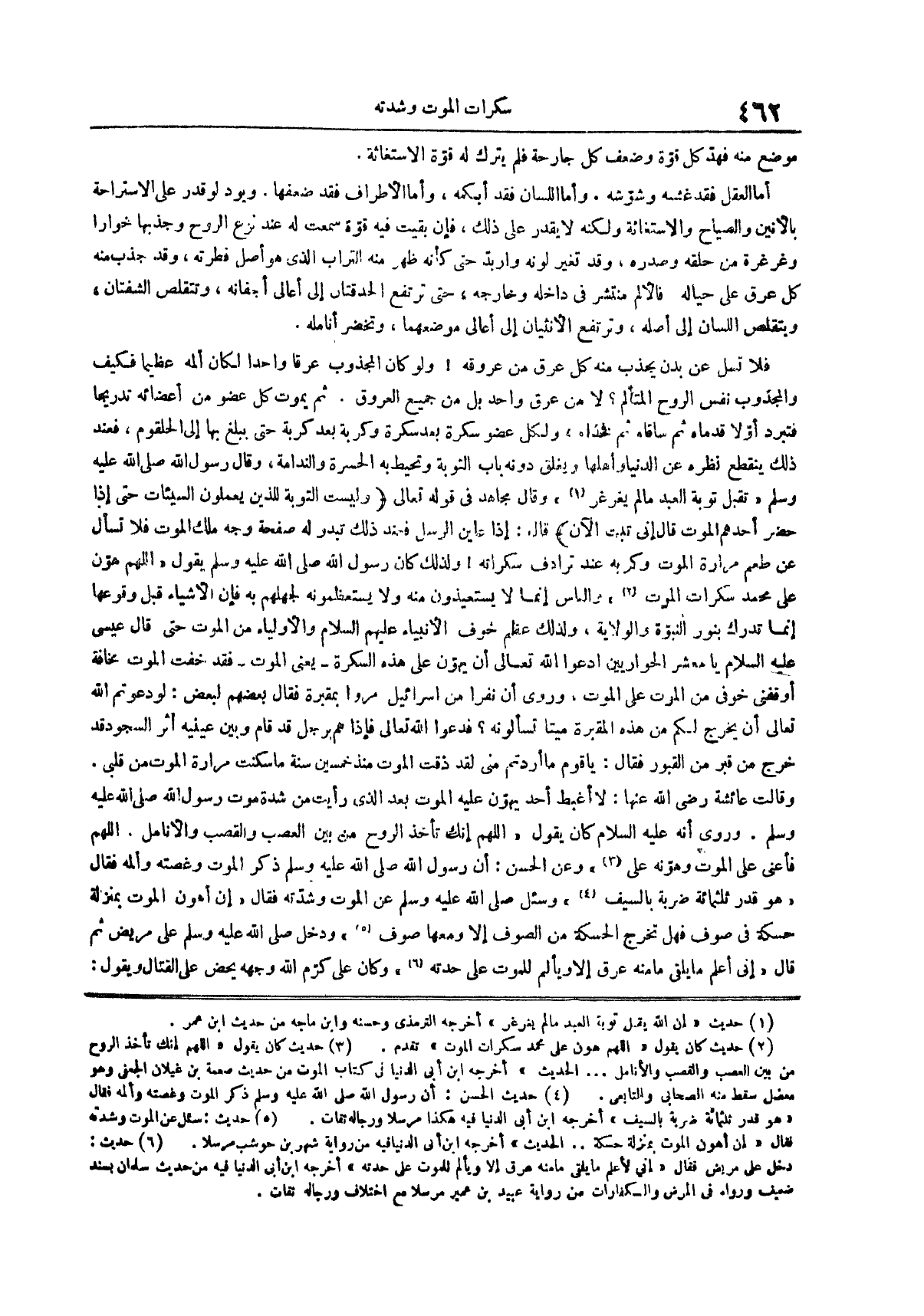 (¬4) حديث الحسن أن رسول الله صلى الله عليه وسلم ذكر الموت وغصته وألمة فقال هو قدر ثلثمائة ضربة بالسيف أخرجه ابن أبي الدنيا فيه هكذا مرسلا ورجالة ثقات