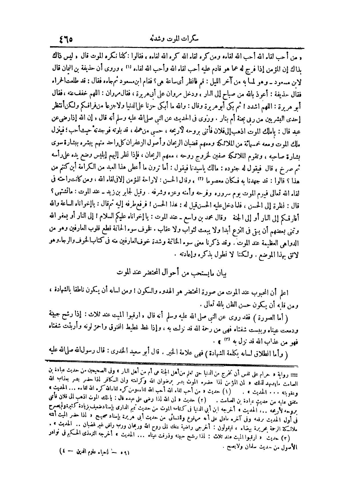 أعلم أن المحبوب عند الموت من صورة المحتضر هو الهدوء والسكون ومن لسانه أن يكون ناطقا بالشهادة ومن قلبه أن يكون حسن الظن بالله تعالى