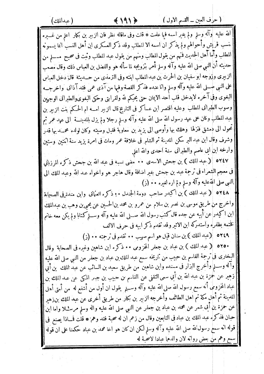 <191> الله صلى الله عليه وسلم ولم يغير اسمه فيما علمت قلت وفيما قاله نظر فإن الزبير بن بكار أعلم من غيره بنسب قريش وأحوالهم ولم يذكر أن اسمه إلا المطلب وقد ذكر العسكري أن أهل النسب إنما يسمونه المطلب وأما أهل الحديث فمنهم من يقول المطلب ومنهم من يقول عبد المطلب وثبت في صحيح مسلم من حديثه أن النبي صلى الله عليه وسلم أمر بتزويجه لما سأله هو والفضل بن العباس ذلك وقال مصعب الزبيري زوجه أبو سفيان بن الحارث بن عبد المطلب ابنته وفي الترمذي من حديثه قال دخل العباس على النبي صلى الله عليه وسلم وأنا عنده فذكر القصة وفيها من آذى عمي فقد آذاني وقد أخرجه البغوي وفي آخره لا يدخل قلب أحد الإيمان حتى يحبكم لله ولقرابتي وحكى البغوي والطبراني الوجهين وصوب الطبراني المطلب وعليه اقتصر بن عساكر في التاريخ قال الزبير أمه أم الحكم بنت الزبير بن عبد المطلب وكان على عهد رسول الله صلى الله عليه وسلم رجلا ولم يزل بالمدينة إلى عهد عمر ثم تحول إلى دمشق فنزلها وهلك بها وأوصى إلى يزيد بن معاوية فقبل وصيته وكان لولده محمد بها قدر وشرف وقال بن عبد البر سكن المدينة ثم الشام في خلافة عمر ومات في إمرة يزيد سنة اثنتين وستين وأخرجه بن أبي عاصم والطبراني سنة إحدى والله أعلم عبد الملك بن جحش الأسدي مضى نسبه في عبد الله بن جحش ذكره المرزباني في معجم الشعراء في ترجمة عبد بن جحش بغير إضافة وقال هاجر هو وأخواه عبد الله وعبد الملك إلى النبي صلى الله عليه وسلم ولم أره لغيره عبد الملك بن أكيدر صاحب دومة الجندل ذكره العثماني وابن منده في الصحابة وأخرج من طريق موسى بن نصر بن سلام عن عمرو بن محمد بن محمد بن الحسين عن يحيى بن وهب بن عبد الملك بن أكيدر عن أبيه عن جده قال كتب رسول الله صلى الله عليه وسلم كتابا ولم يكن معه خاتم فختمه بظفره واستدركه بن الأثير وقد تقدم ذكر أبيه في حرف الألف عبد الملك بن سنان قيل هو اسم صهيب تقدم في ترجمته عبد الملك بن عباد بن جعفر المخزومي ذكره بن شاهين وغيره في الصحابة وقال البخاري في ترجمة القاسم بن حبيب من تاريخه سمع عبد الملك بن عباد بن جعفر من النبي صلى الله عليه وسلم وأخرج البزار في مسنده وابن شاهين من طريق سعيد بن المسيب عن عبد الملك بن أبي زهير عن حمزة بن عبد الله بن أبي سمي الثقفي عن القاسم بن حبيب بن جبير المكي عن عبد الملك بن عباد المخزومي أنه سمع رسول الله صلى الله عليه وسلم يقول إن أول من أشفع له من أمتي أهل المدينة ثم أهل مكة ثم أهل الطائف وأخرجه الزبير بن بكار من طريق أخرى عن عبد الملك بن زهير عن حمزة بن أبي شمر عن محمد بن عباد بن جعفر عن النبي صلى الله عليه وسلم مرسلا وأما بن حبان فذكره عبد الملك بن عباد في التابعين وقال من زعم أن له صحبة فقد وهم قلت فماذا يصنع في قوله إنه سمع رسول الله صلى الله عليه وسلم لكن إن كان هو أخا محمد بن عباد حكمنا على أن قوله سمع وهم من بعض رواته لأن والدهما عبادا لا صحبة له §