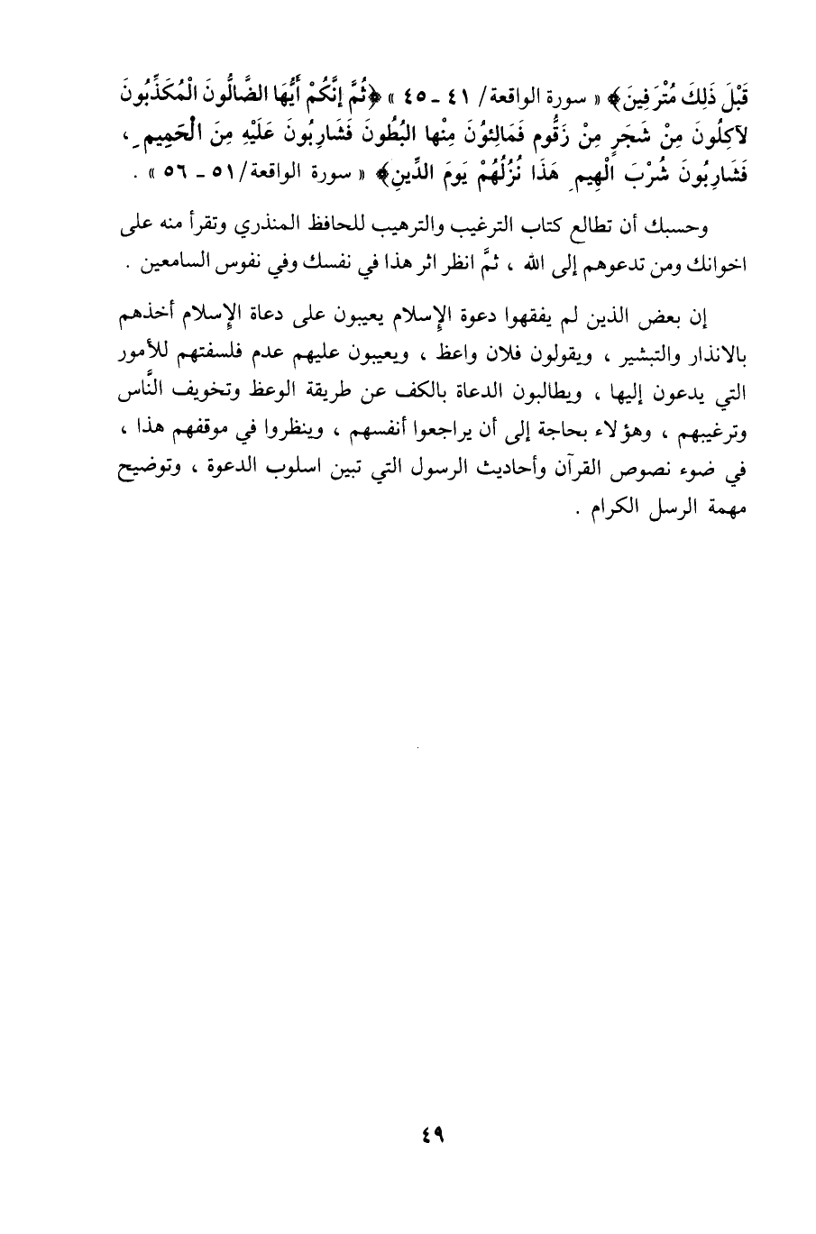 إن بعض الذين لم يفقهوا دعوة الإسلام يعيبون على دعاة الإسلام أخذهم بالإنذار والتبشير، ويقولون: فلان واعظ، ويعيبون عليهم عدم فلسفتهم للأمور التي يدعون إليها، ويطالبون الدعاة بالكف عن طريقة الوعظ وتخويف النّاس وترغيبهم، وهؤلاء بحاجة إلى أن يراجعوا أنفسهم، وينظروا في موقفهم هذا، في ضوء نصوص القرآن وأحاديث الرسول التي تبين أسلوب الدعوة، وتوضيح مهمة الرسل الكرام.