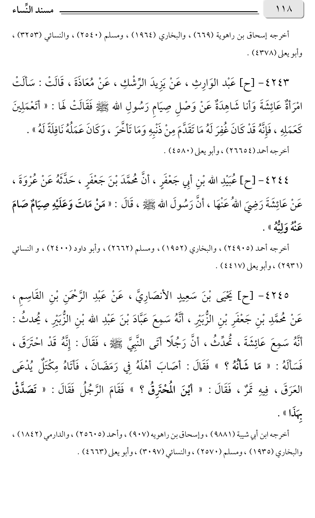 أخرجه أحمد (٢٤٩٠٥)، والبخاري (١٩٥٢)، ومسلم (٢٦٦٢)، وأبو داود (٢٤٠٠)، والنسائي (٢٩٣١)، وأبو يعلى (٤٤١٧).
