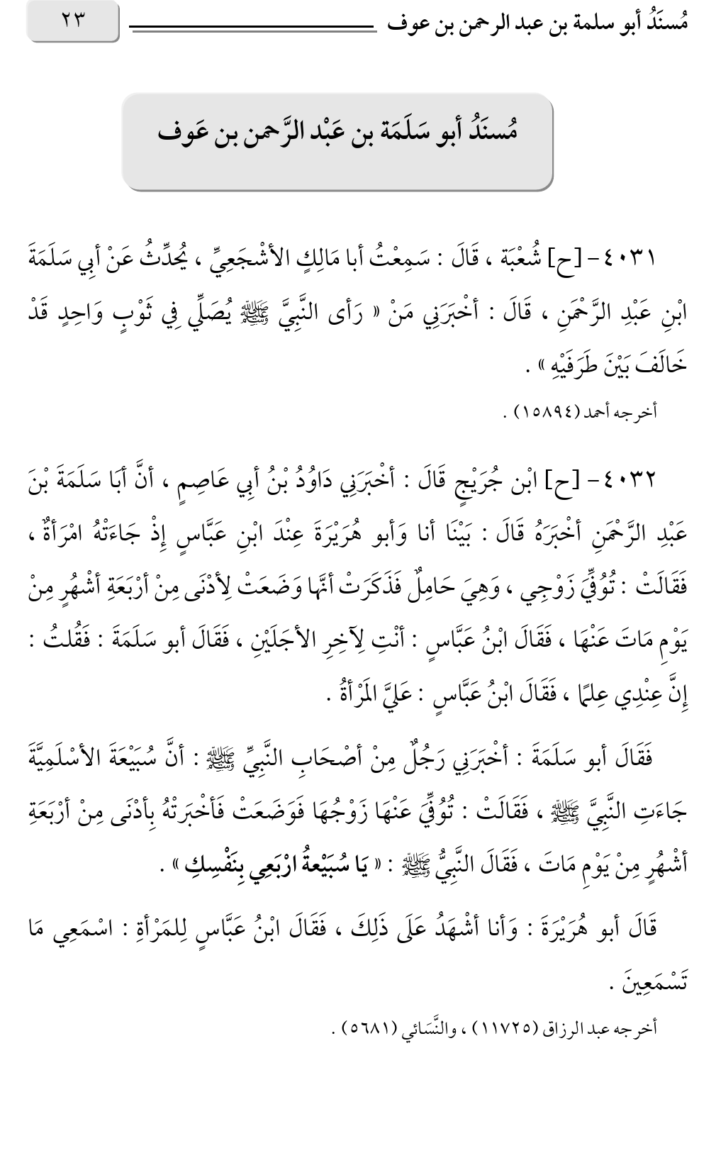 مُسنَدُ أبو سَلَمَة بن عَبْد الرَّحمن بن عوف