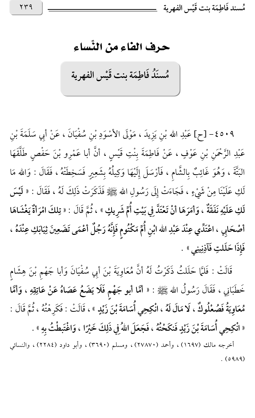 مُسنَدُ فَاطِمَة بنت قَيْس الفهرية