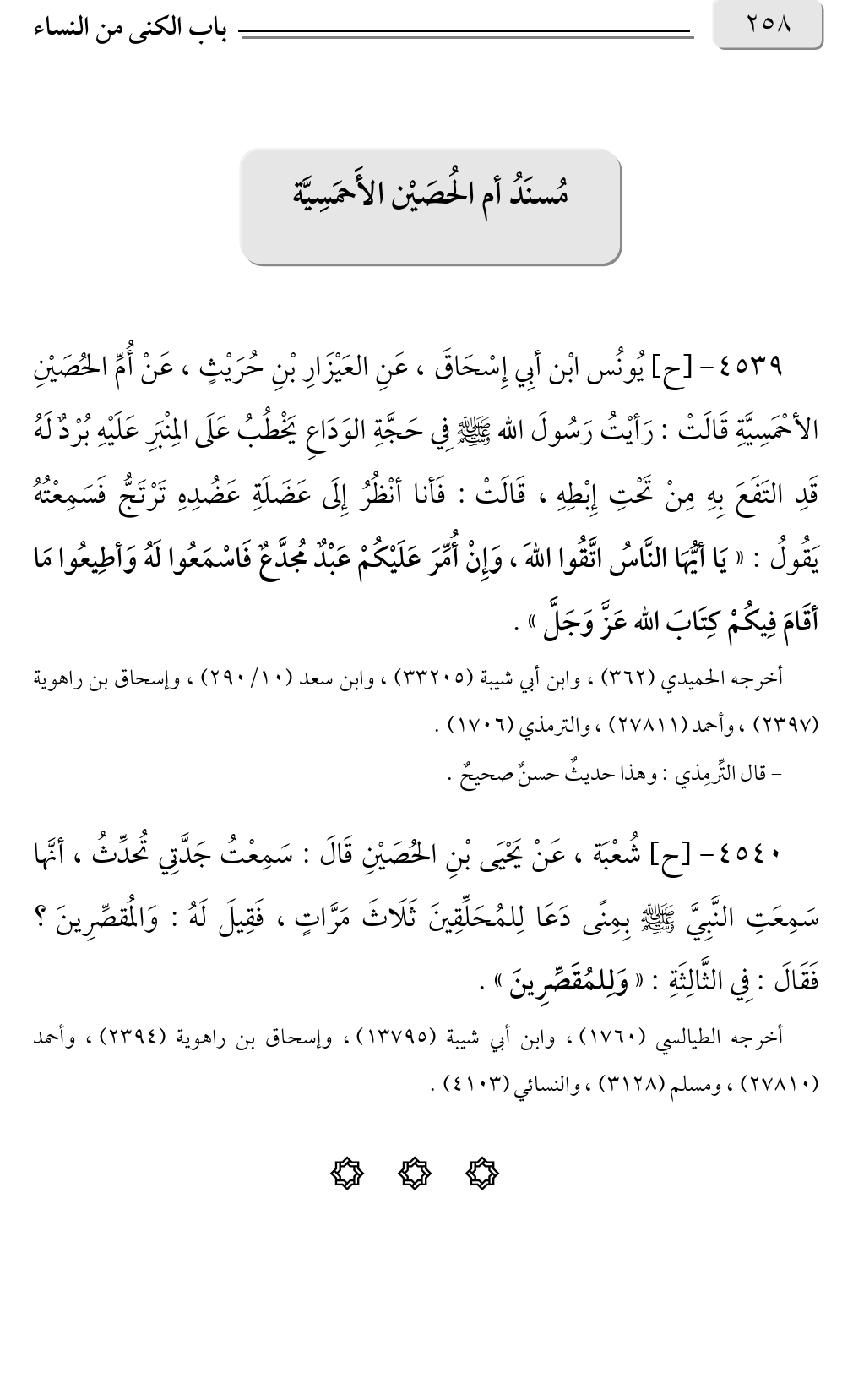 مُسنَدُ أم الحُصَيْن الأَحمَسِيَّة