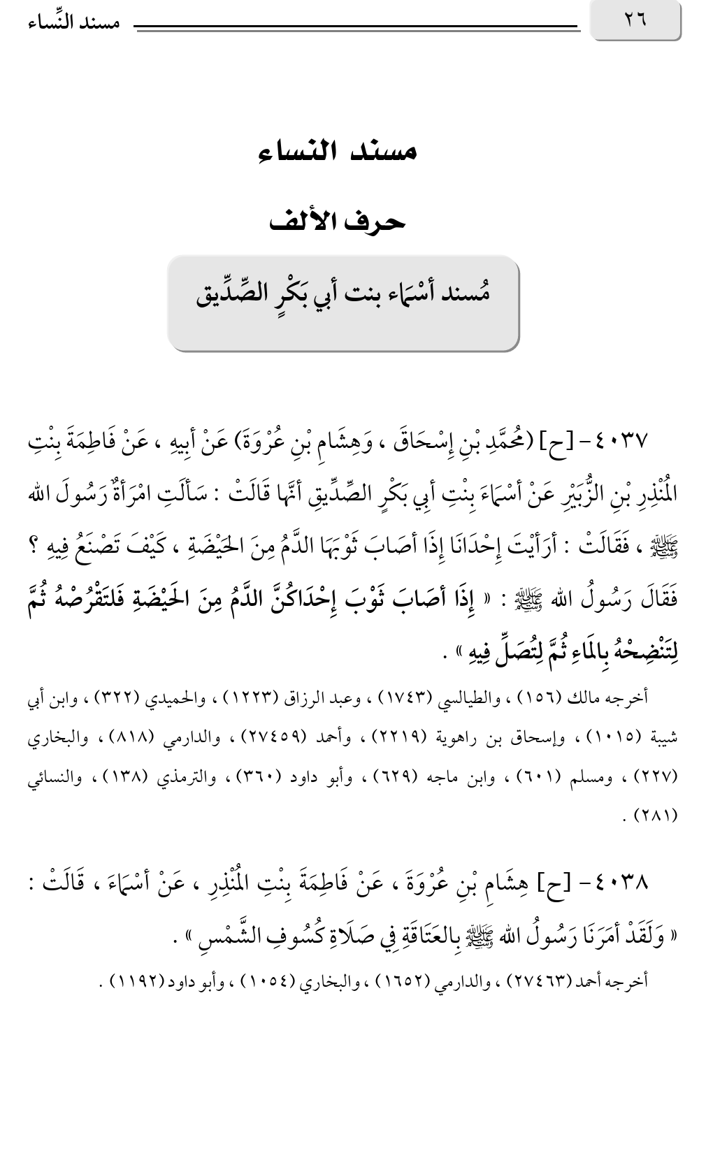 مُسند أسْمَاءَ بِنْتِ أبِي بَكْرٍ الصِّدِّيقِ