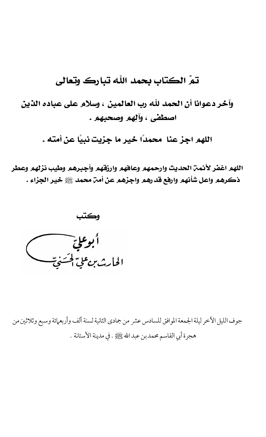 تمَّ الكتاب بحمد الله تبارك وتعالى