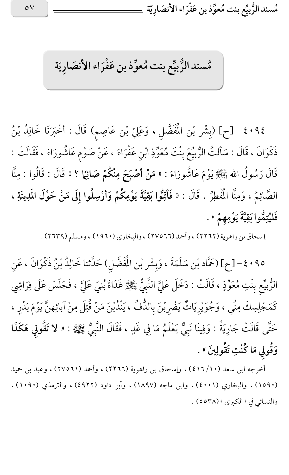 مُسند الرُّبيِّع بنت مُعوِّذ بن عَفْرَاء الأنصَارِيّة