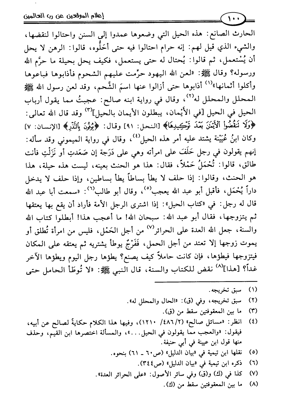 (٤) انظر: "مسائل صالح" (٢/ ٤٨٦/ ١٢١٠)، وفيها هذا الكلام حكايةً لصالح عن أبيه، فيقول: "والعجب مما يقولون في الحيل. . . "، والمسألة اختصرها ابن القيم، وحذف منها قول ابن عيينة في أبي حنيفة.