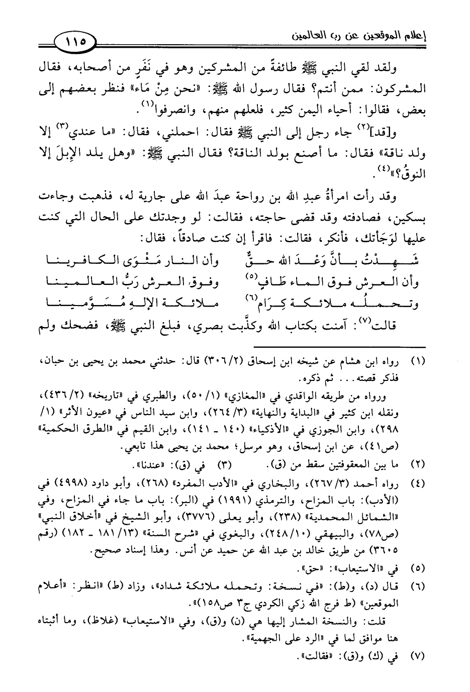 وقد رأت امرأةُ عبدِ اللَّه بن رواحة عبدَ اللَّه على جارية له، فذهبت وجاءت بسكين، فصادفته وقد قضى حاجته، فقالت: لو وجدتك على الحال التي كنت عليها لوَجَأتك، فأنكر، فقالت: فاقرأ إن كنت صادقًا، فقال: