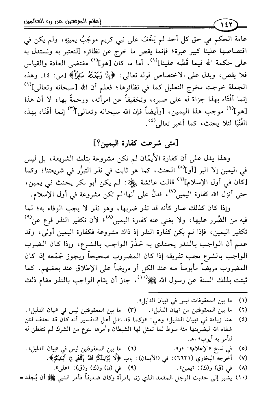 عامة الحكم في حق كل أحد لم يَخْفَ على نبيٍ كريم موجَبُ يمينِهِ، ولم يكن في اقتصاصها علينا كبير عبرة؛ فإنما يقص ما خرج عن نظائره [لنعتبر به ونستدل به على حكمة اللَّه فيما قَصَّه علينا] (١)، أما ما كان [هو] (١) مقتضى العادة والقياس فلا يقص، ويدل على الاختصاص قوله تعالى: {إِنَّا وَجَدْنَهُ صَابِرًا} [ص: ٤٤] وهذه الجملة خرجت مخرج التعليل كما في نظائرها؛ فعلم أن اللَّه [سبحانه وتعالى] (١) إنما أفْتَاه بهذا جزاءً له على صبره، وتخفيفًا عن امرأته، ورحمةً بها، لا أن هذا [هو] (٢) موجب هذا اليمين، [وأيضًا فإن اللَّه سبحانه وتعالى] (٣) إنما أفْتَاه بهذه الفُتْيَا لئلا يحنث، كما أخبر تعالى (٤).
