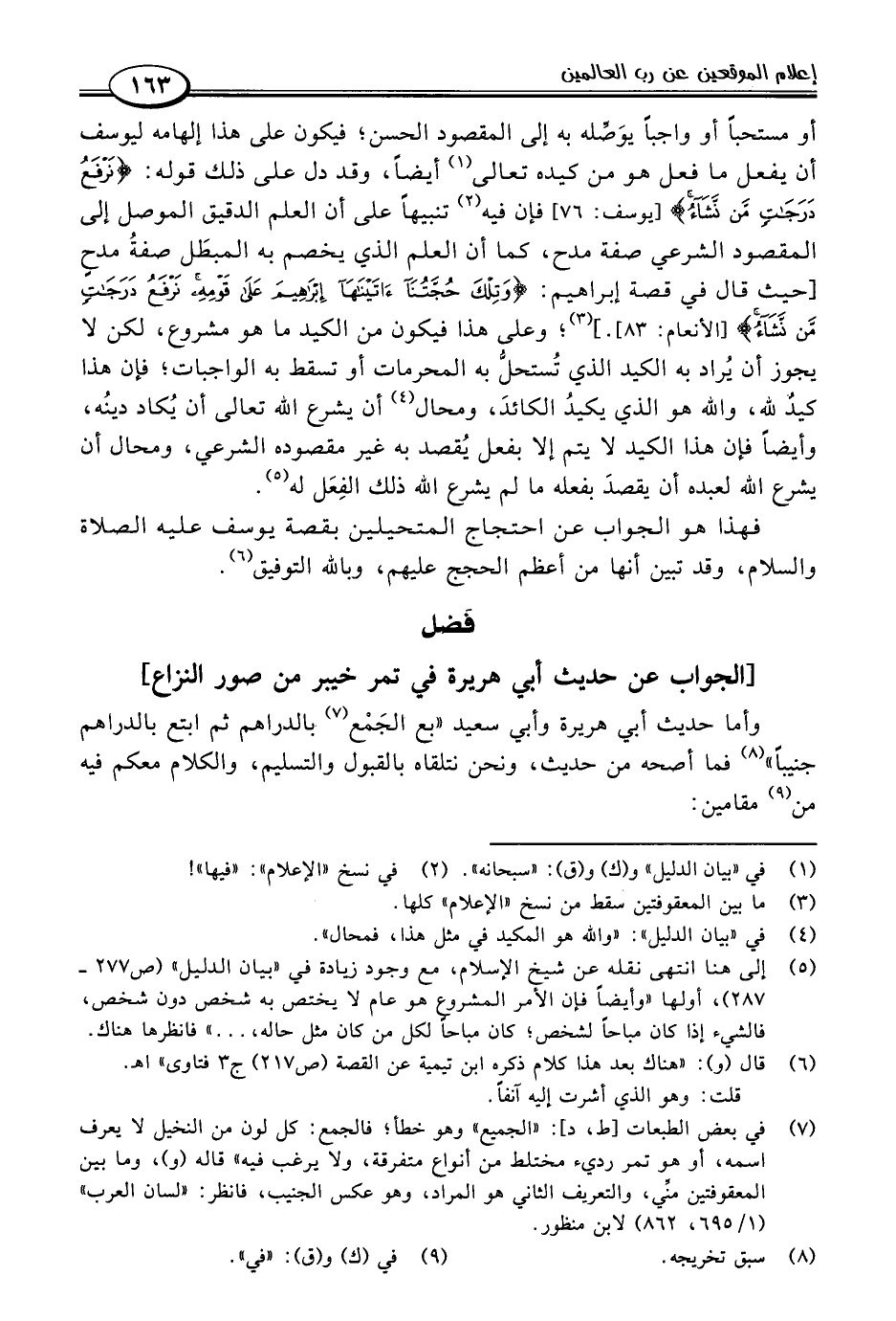 (٦) قال (و): "هناك بعد هذا كلام ذكره ابن تيمية عن القصة (ص ٢١٧) ج ٣ فتاوى" اهـ. قلت: وهو الذي أشرت إليه آنفًا.
