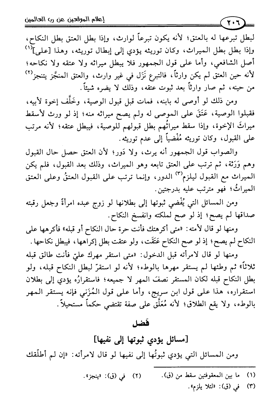 فصل [مسائل يؤدي ثبوتها إلى نفيها]