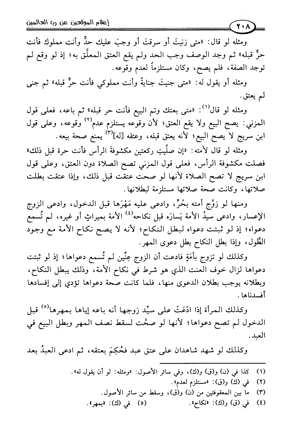 (١) كذا في (ن) و (ق) و (ك)، وفي سائر الأصول: "ومثله: لو أن يقول له".