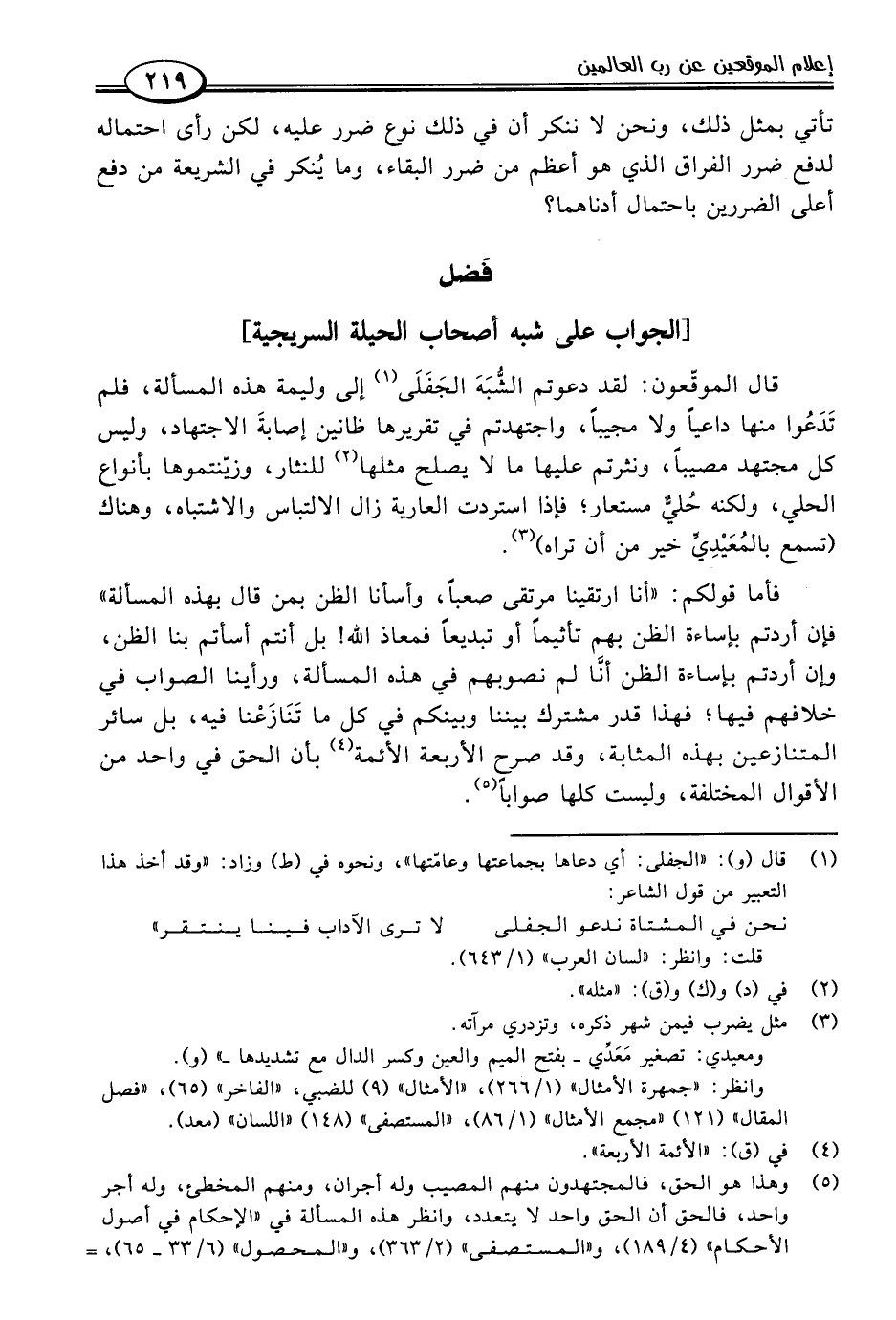 فصل [الجواب على شبه أصحاب الحيلة السريجية]
