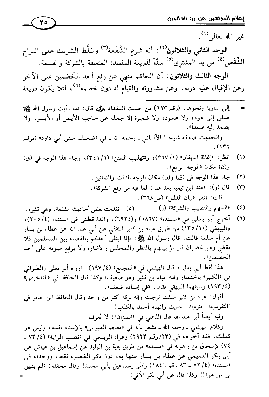 (٣) قال (و): "عند ابن تيمية بعد هذا: لما فيه من رفع الشركة".