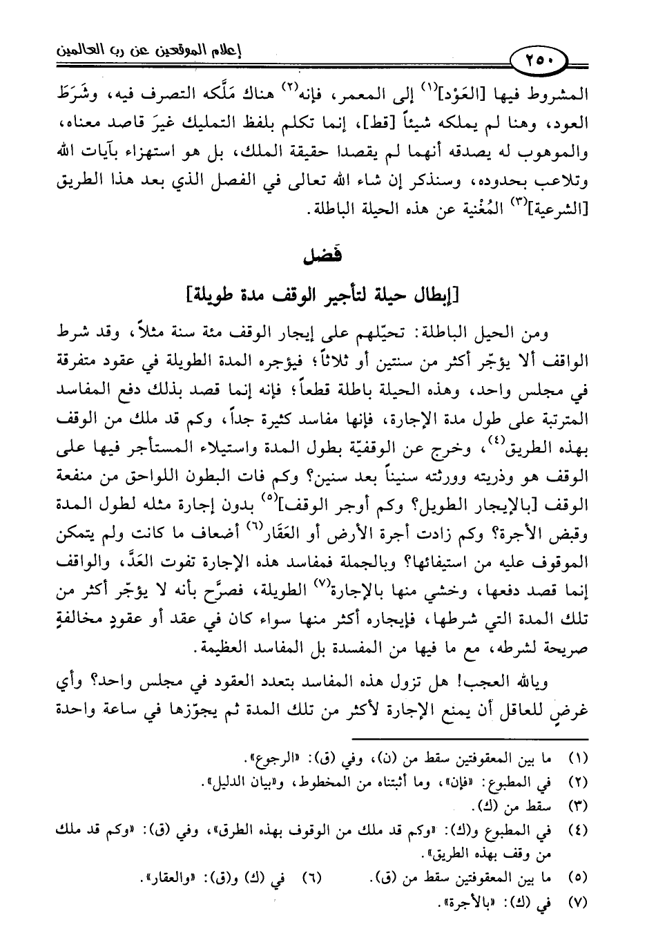فصل [إبطال حيلة لتأجير الوقف مدة طويلة]