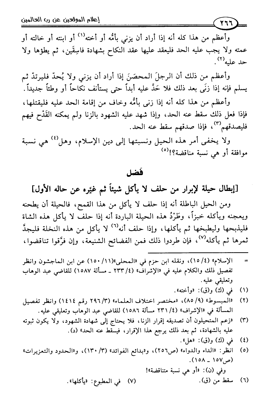 (٥) انظر: "الداء والدواء" (ص ٢٥٦)، و"بدائع الفوائد" (٣/ ١٣٠)، و"الحدود والتعزيرات" (ص ١٥٧ - ١٥٨).