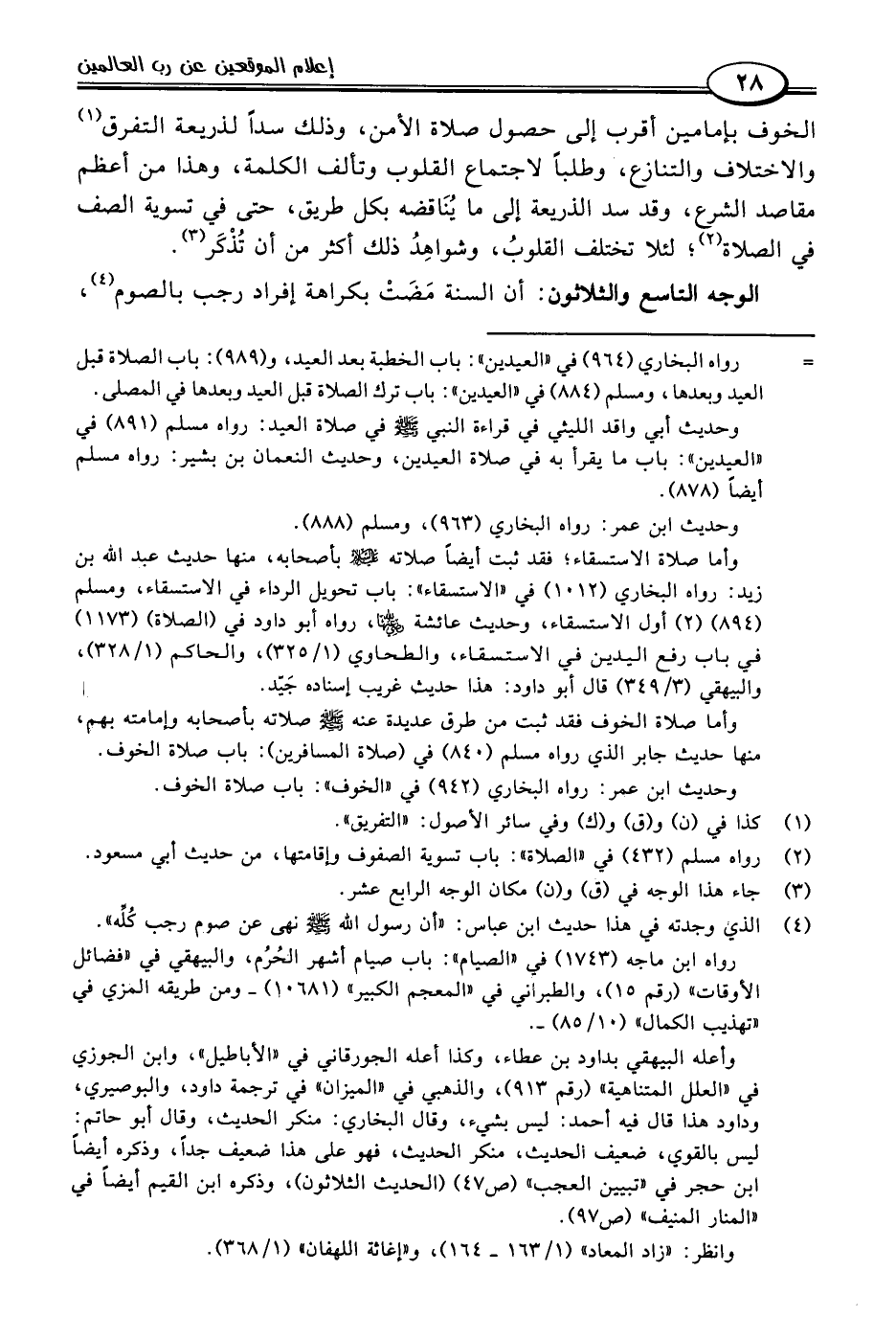 الوجه التاسع والثلاثون: أن السنة مَضَتْ بكراهة إفراد رجب بالصوم (٤)،