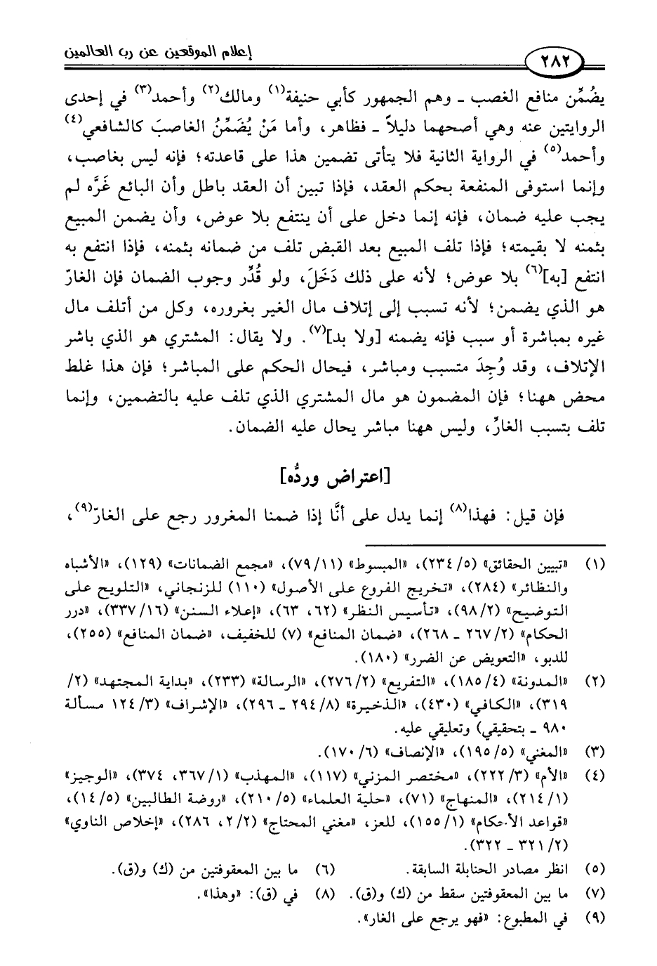 (١) "تبيين الحقائق" (٥/ ٢٣٤)، "المبسوط" (١١/ ٧٩)، "مجمع الضمانات" (١٢٩)، "الأشباه والنظائر" (٢٨٤)، "تخريج الفروع على الأصول" (١١٠) للزنجاني، "التلويح على التوضيح" (٢/ ٩٨)، "تأسيس النظر" (٦٢، ٦٣)، "إعلاء السنن" (١٦/ ٣٣٧)، "درر الحكام" (٢/ ٢٦٧ - ٢٦٨)، "ضمان المنافع" (٧) للخفيف، "ضمان المنافع" (٢٥٥)، للدبو، "التعويض عن الضرر" (١٨٠).