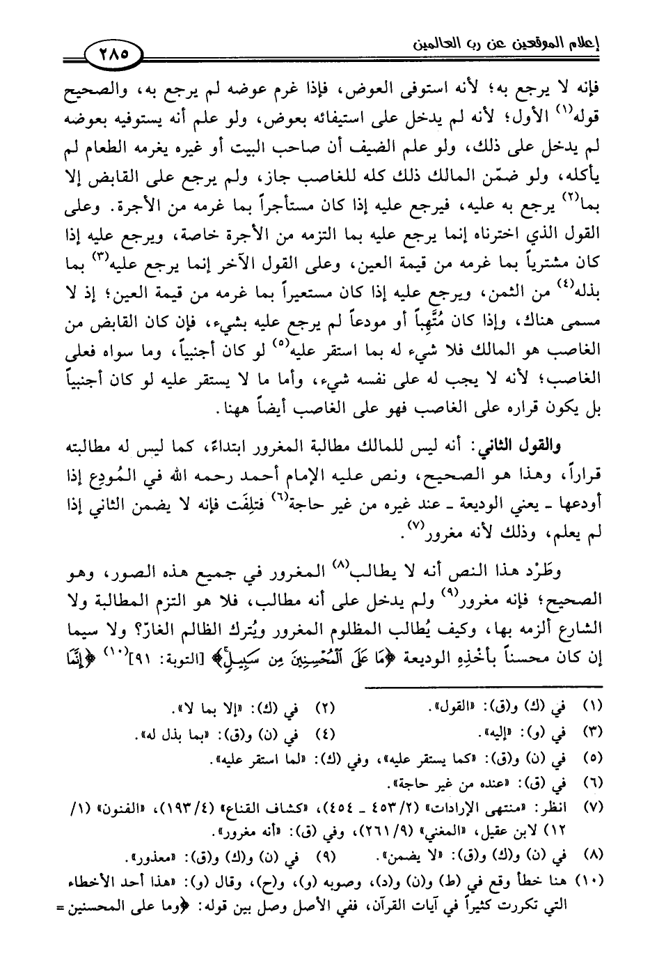 وطَرْد هذا النص أنه لا يطالب (٨) المغرور في جميع هذه الصور، وهو الصحيح؛ فإنه مغرور (٩) ولم يدخل على أنه مطالب، فلا هو التزم المطالبة ولا الشارع ألزمه بها، وكيف يُطالب المظلوم المغرور ويُترك الظالم الغارّ؟ ولا سيما إن كان محسنًا بأخْذِهِ الوديعة {مَا عَلَى الْمُحْسِنِينَ مِنْ سَبِيلٍ} [التوبة: ٩١] (١٠) {إِنَّمَا