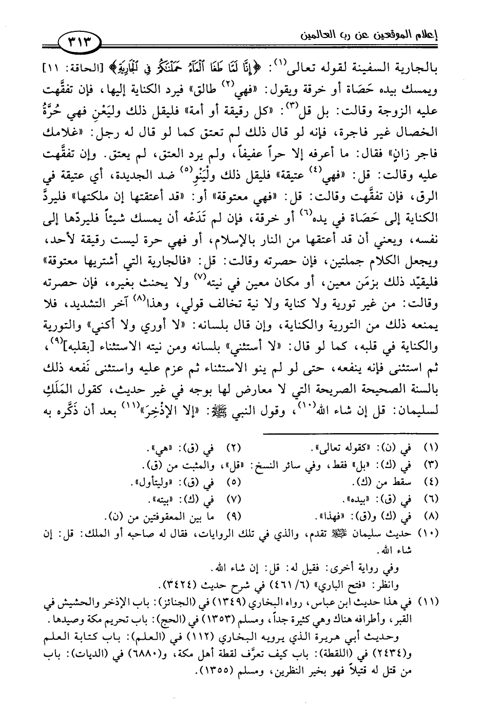 (١٠) حديث سليمان عليه السلام تقدم، والذي في تلك الروايات، فقال له صاحبه أو الملك: قل: إن شاء اللَّه.