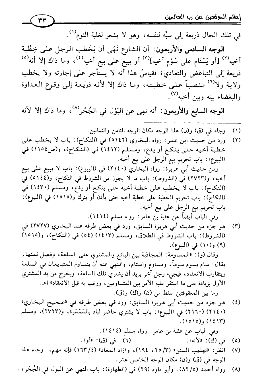 (٧) انظر: "تهذيب السنن" (٣/ ٢٥، ١٩٤)، و"زاد المعاد" (٤/ ١٦٣) فإنه مهم، وجاء هذا الوجه في (ق) و (ن) مكان الوجه الخامس عشر.