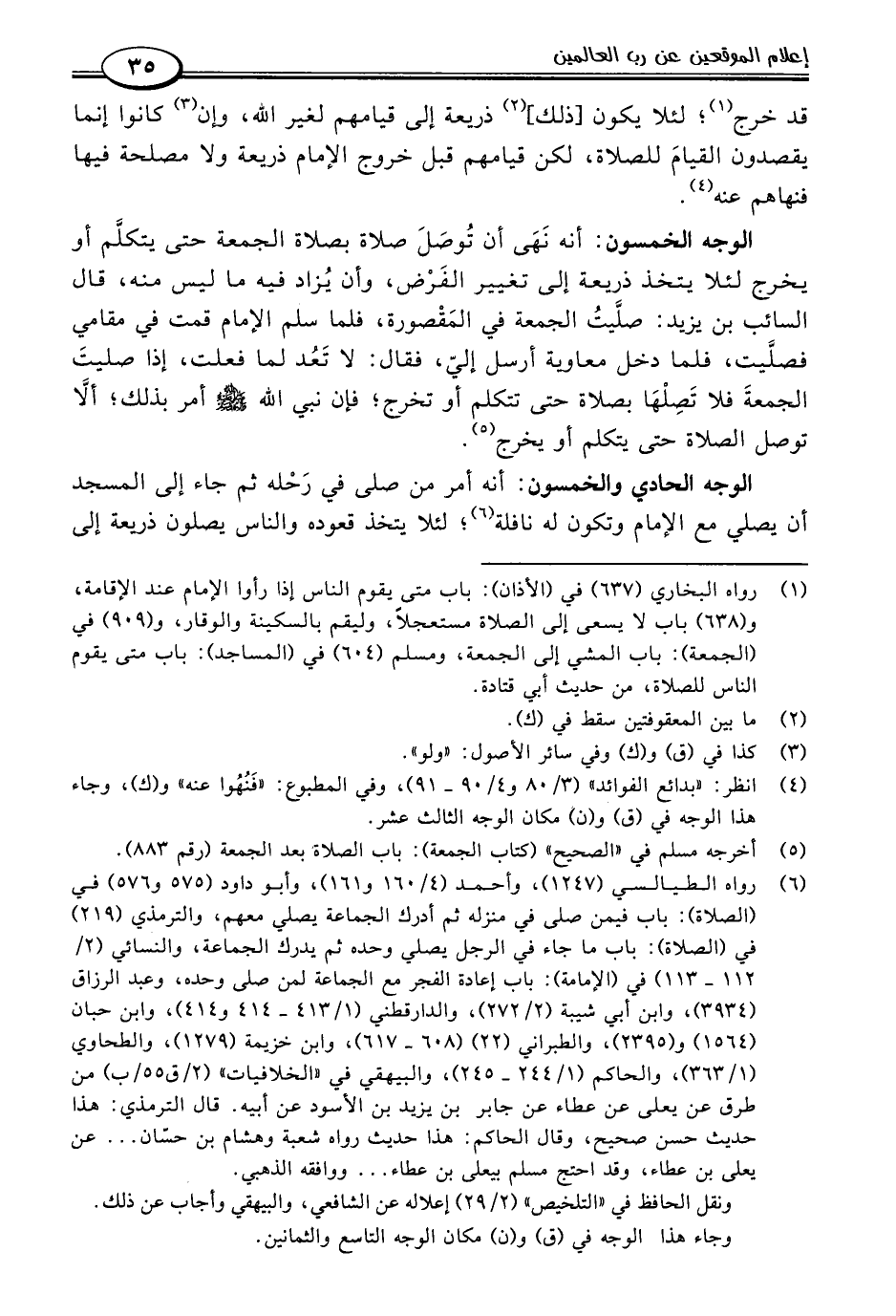 (٥) أخرجه مسلم في "الصحيح" (كتاب الجمعة): باب الصلاة بعد الجمعة (رقم ٨٨٣).