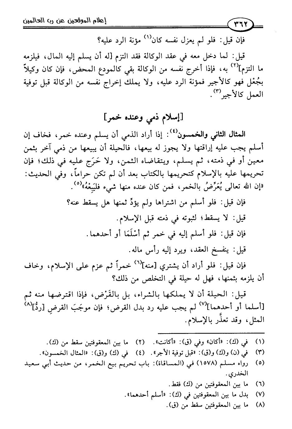كتاب إعلام الموقعين عن رب العالمين - ت مشهور (اسم الجزء: 5)
