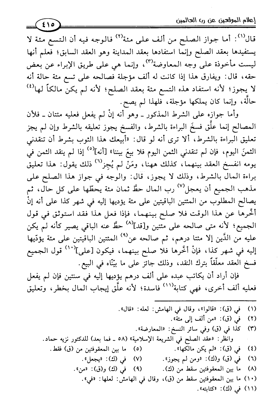 وانظر: "عقد الصلح في الشريعة الإسلامية" (٥٨ - فما بعد) للدكتور نزيه حماد.
