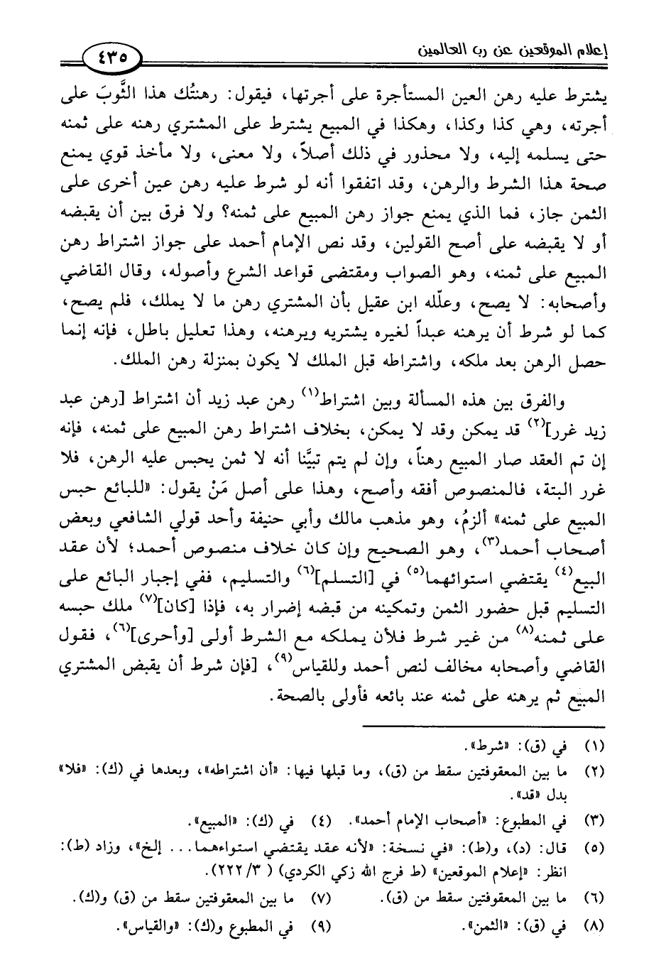 (٥) قال: (د)، و (ط): "في نسخة: "لأنه عقد يقتضي استواءهما. . . إلخ"، وزاد (ط): انظر: "إعلام الموقعين" (ط فرج اللَّه زكي الكردي) (٣/ ٢٢٢).
