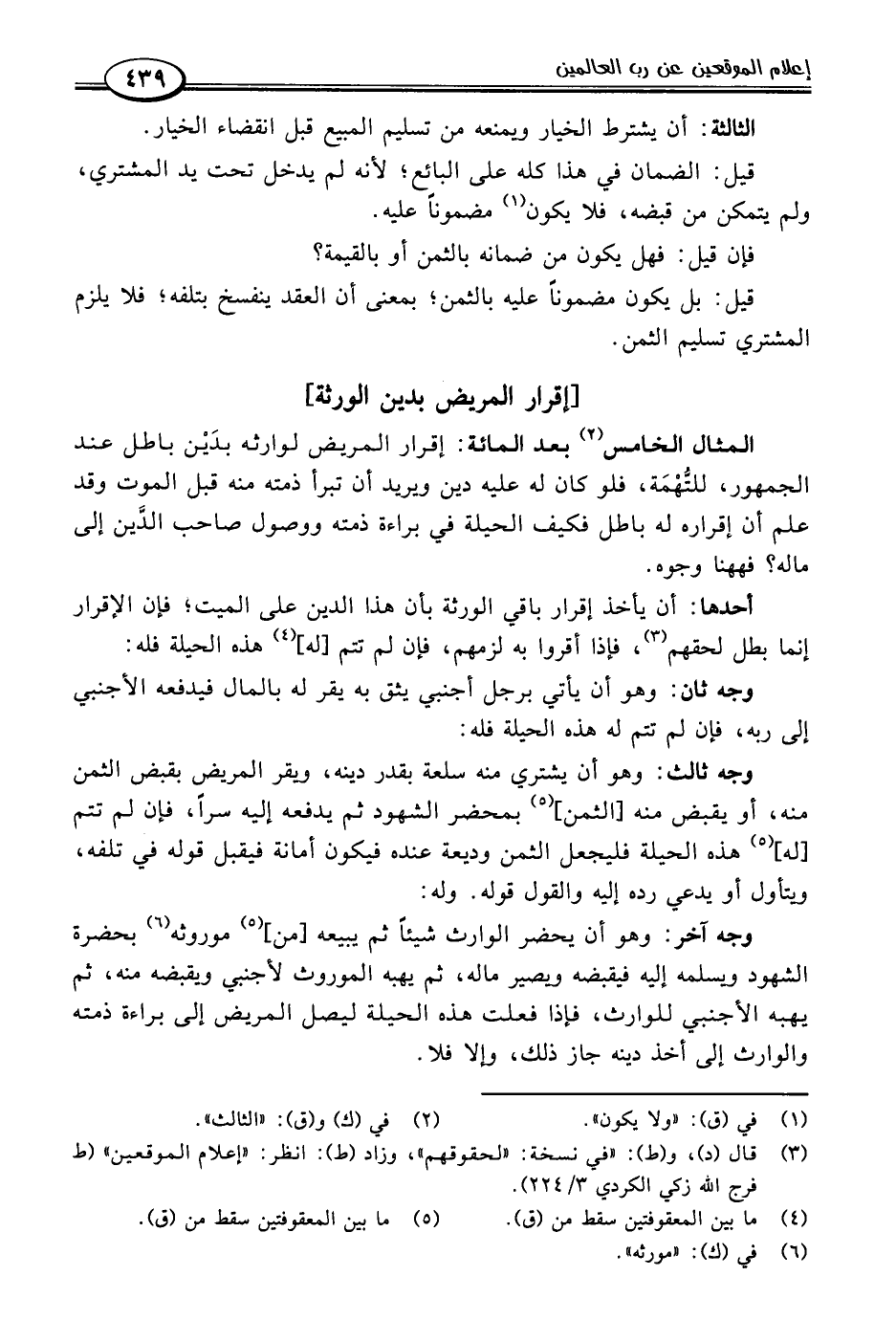 كتاب إعلام الموقعين عن رب العالمين - ت مشهور (اسم الجزء: 5)